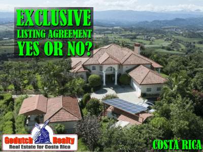 Unless you love to suffer, do not sign an exclusive listing agreement for your property in Costa Rica with any real estate agency, no matter how sexy, famous, smooth, handsome, or successful the agent who promises to sell your property next week is.